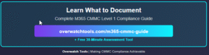 Microsoft 365 for CMMC Level 1 A Small Defense Contractor’s Guide to Self-Assessment Stop Guessing, Start Documenting: Your M365 CMMC Compliance Roadmap Last Updated: January 2025 Start Free Assessment Schedule Free 30 Min Consultation Explore Our Tools The Small GovCon Dilemma You’re a small defense subcontractor. Your prime just informed you that CMMC Level 1 compliance... Continue reading